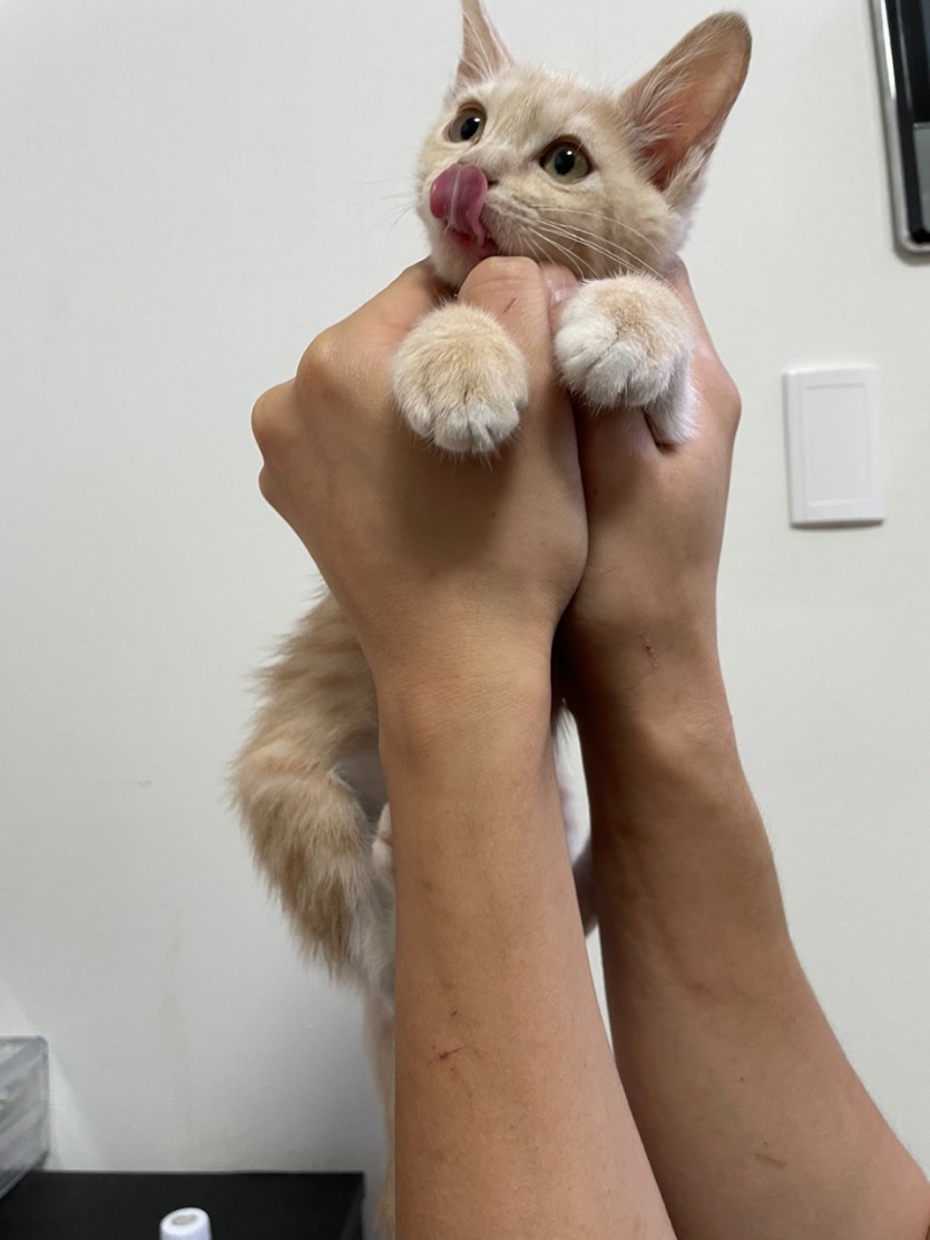 보호 한 지는 1달-2달 정도 되었고 현재 건강하게 자라 체중은 1.5kg 정도 됐습니다
