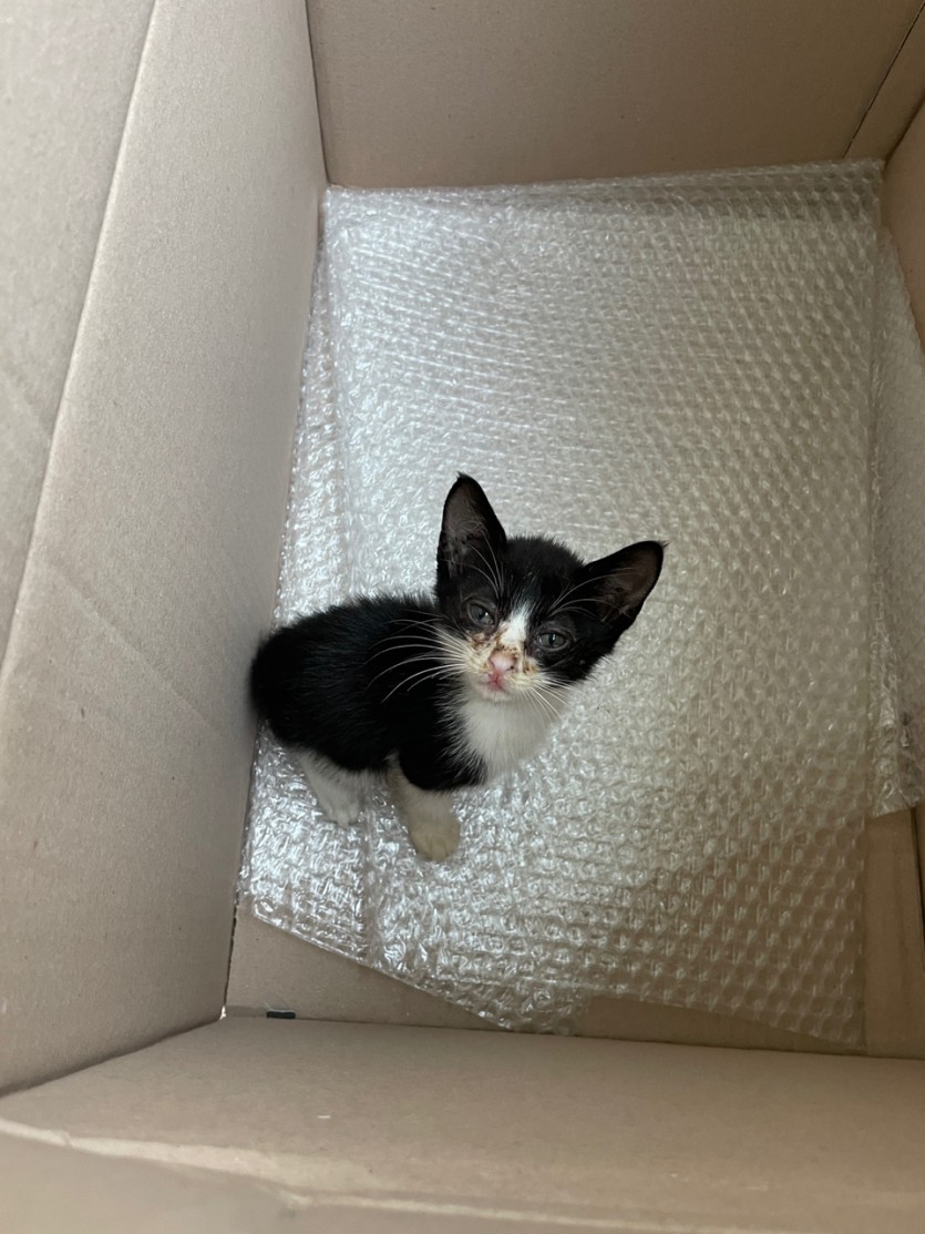 길에서 엄마 잃어 차도에 있던 아기 고양이 입니다.