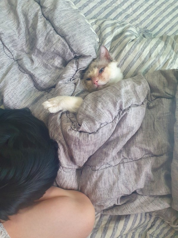 저희 두부는 사람을 엄청 좋아해요. 고양이 중 최고 원탑이라 할 수 있어요. 모르는 사람이 와도 무릎위에 누워 잔답니다. 애교도 많고 말썽도 하나 부리지 않아요. 제가 장난치고 괴롭혀도 한번도 화낸적없고 정말정말 이쁜 고양이입니다. 이름 부르면 와서 폭 안겨요.