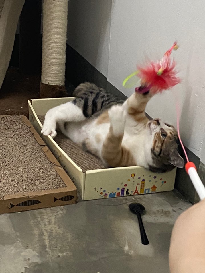 1살정도 추정되고 원래 길냥이라그런지 사회화는 아직 덜 되어 개냥이는 아니지만 장난감으로 잘 놀고 밥도 정말 잘 먹고 건강해요!