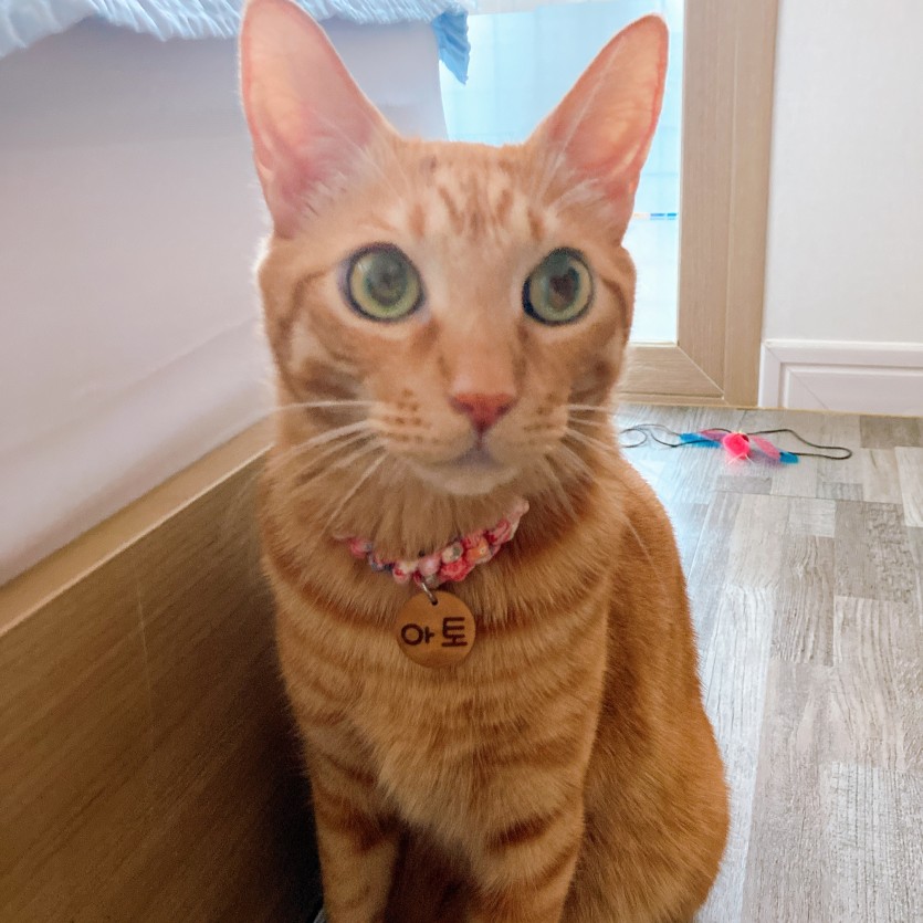 이름은 아토, 수컷에 중성화 되어있고 6kg, 4살정도 되었어요, 예방접종 다 되어있습니다 :-)