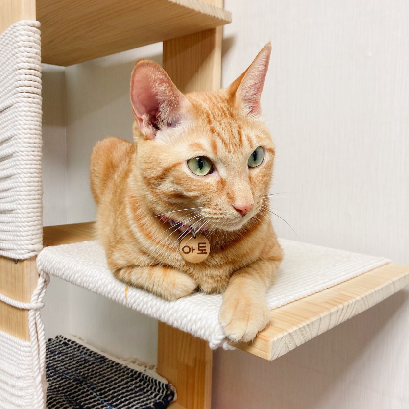 자율급식, 분수대형 식수대를 두고 있고 카펫형 스크래쳐도 잘 써서 현재 디어캣 카펫형 사용중입니다. 두부모래 후드형 대형 화장실쓰고 있으나 평판형을 더 좋아하긴 해요, 두 개 다 드릴 수 있어요, 우드화장실도 있는데 화장실 용도말고 숨숨집으로 사용 중입니다. 낯선 환경에서의 최대한 거부감이 덜하도록 사용 중인 것들을 원하시는대로 드릴 예정이에요.