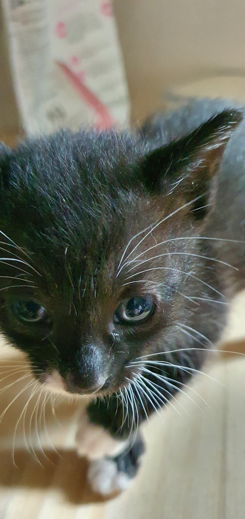 깜장이 3마리, 얼룩이 3마리, 줄무늬 1마리입니다.