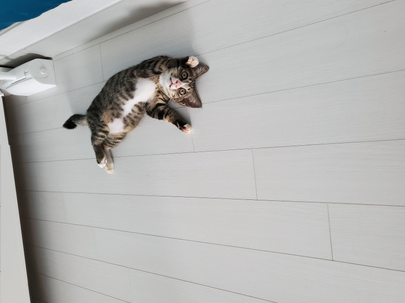 좀 기다려 봐도 엄마 고양이는 오지 않아서 구조를 했습니다 처음에 애기가 쫌 다치고 말라 있어서 병원에 데려가 치료도 하고 지금 임시보호 하고 있습니다.