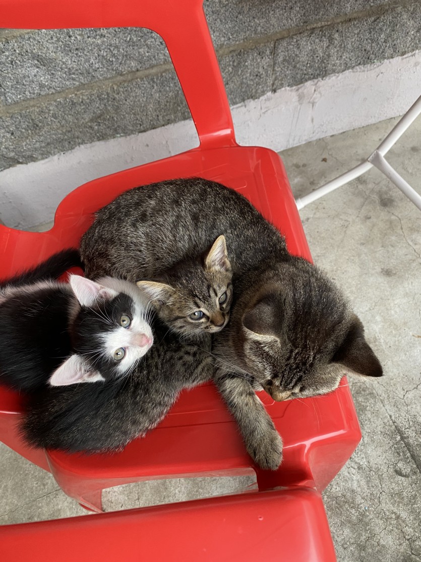 밥 주고 있는 길냥이가 새끼들을 낳았어요
