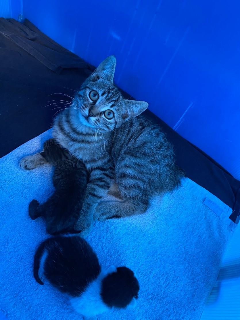 누가 버렸는지 어미고양이가 사람을 손을 많이 탔고