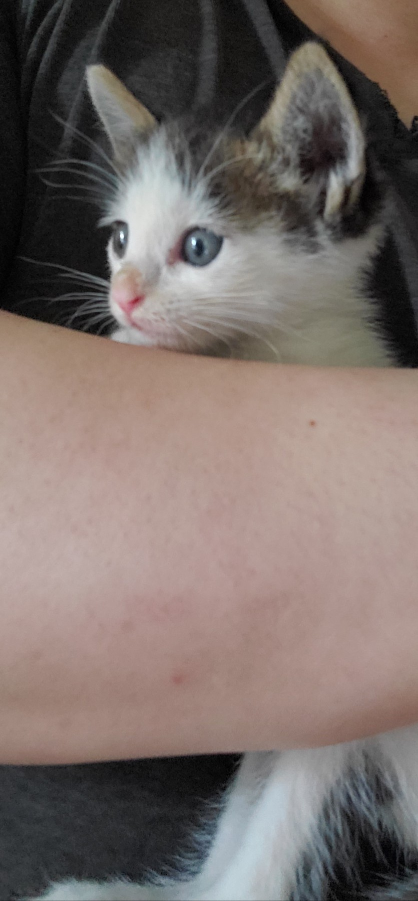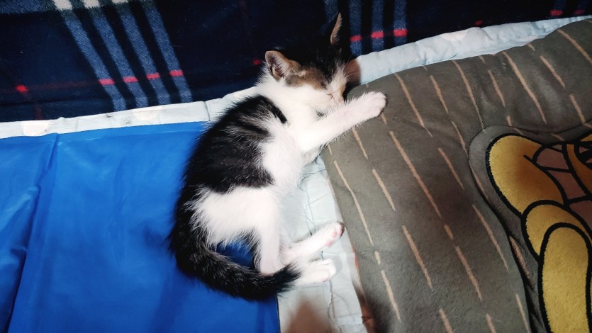 비가 많이 내리던 날 아침부터 계속 울고 있길래 신경이 쓰여서 이틀정도 고양이 사료을 주며 지켜보고 있었습니다 하지만 어미가 나타나지 않아서 임시보호를 하게되었습니다.