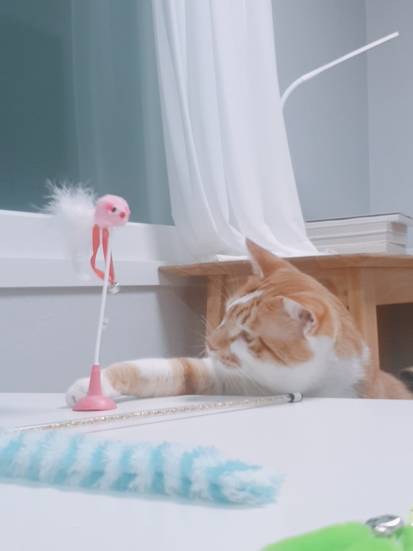 장난감: 깃털 달릴것을 좋아하고 두부는 특히 레이저를 좋아합니다
