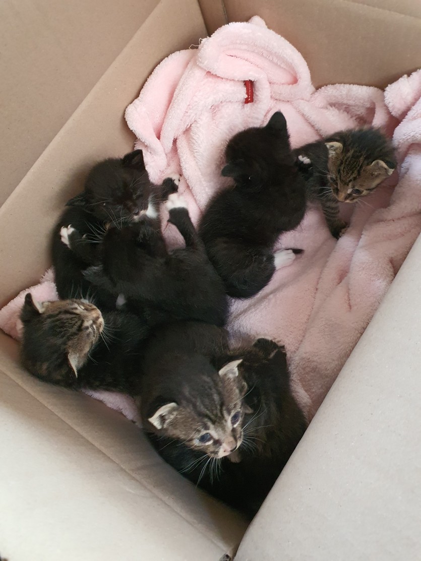 임신한 길냥이 불쌍해서 농장으로 데려와 보살폈는데, 새끼를 7마리 낳았습니다.