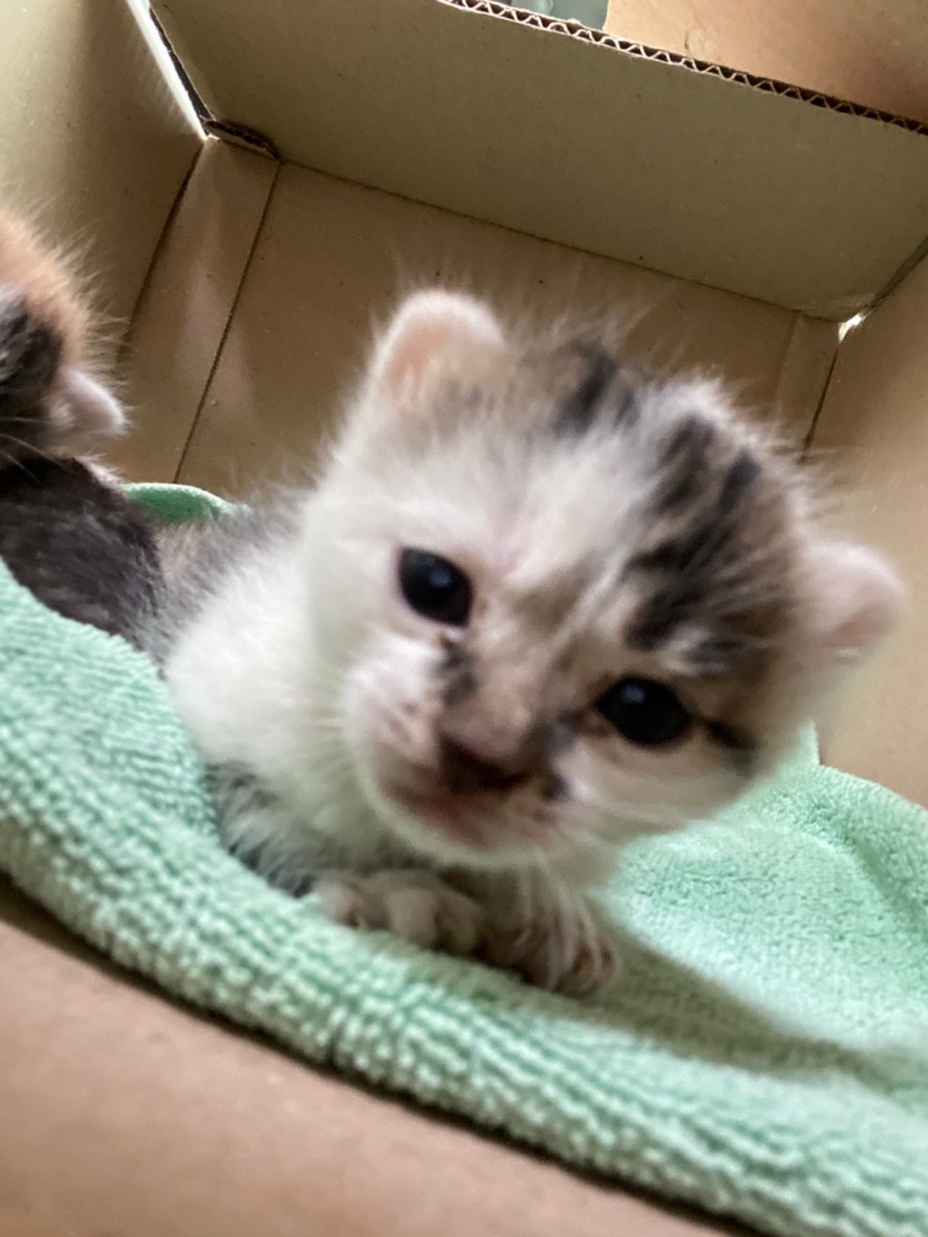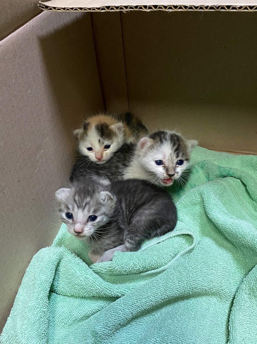 어제 유기견보호소 앞에 3마리의 아기 고양이들이 상자에 담겨 유기되었습니다.