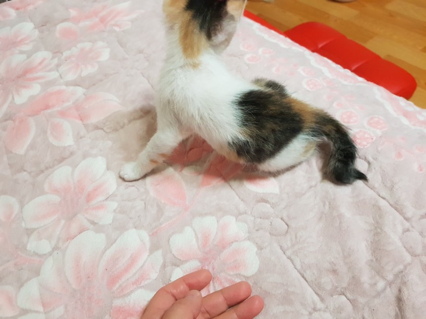 집안사정으로 더이상 돌볼수가 없어서 분양합니다. 분유 떼고 이제막 사료 먹고 있습니다.