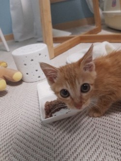 몸무게는 760정도 나가고요, 참치캔이랑 불린사료 섞어 먹이고 잇어요.