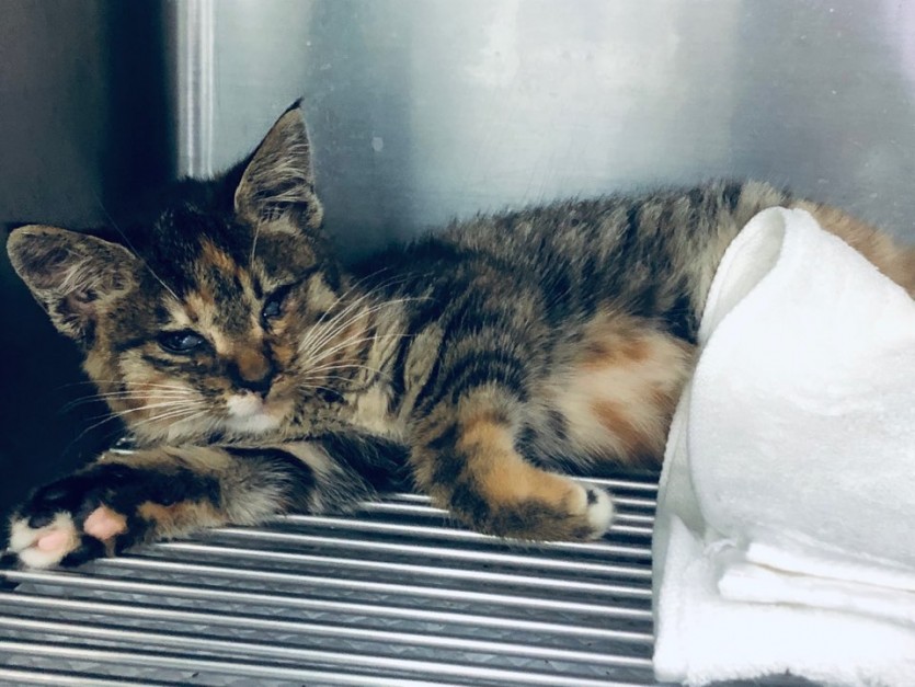 두 눈이 붙은 채로 ㅠㅠ 어미에게 버려진 아이입니다.