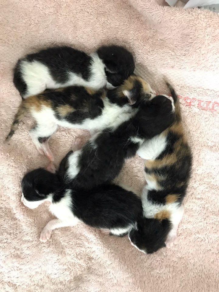 11월초 고양이는 아기들을 5마리 낳았습니다.