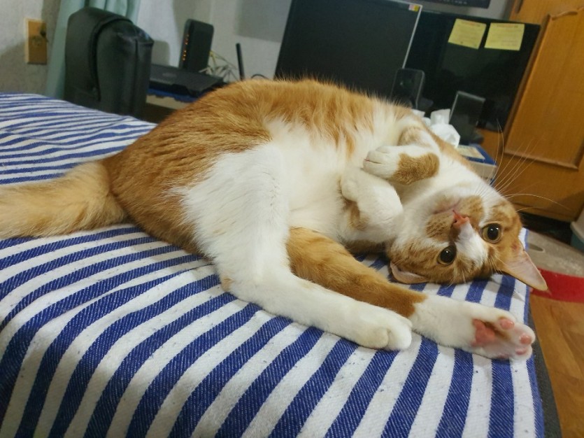 겨드랑이에 머리를 끼고 자는걸 좋아합니다. 사료나 화장실은 안가리구요. 간식은 항
