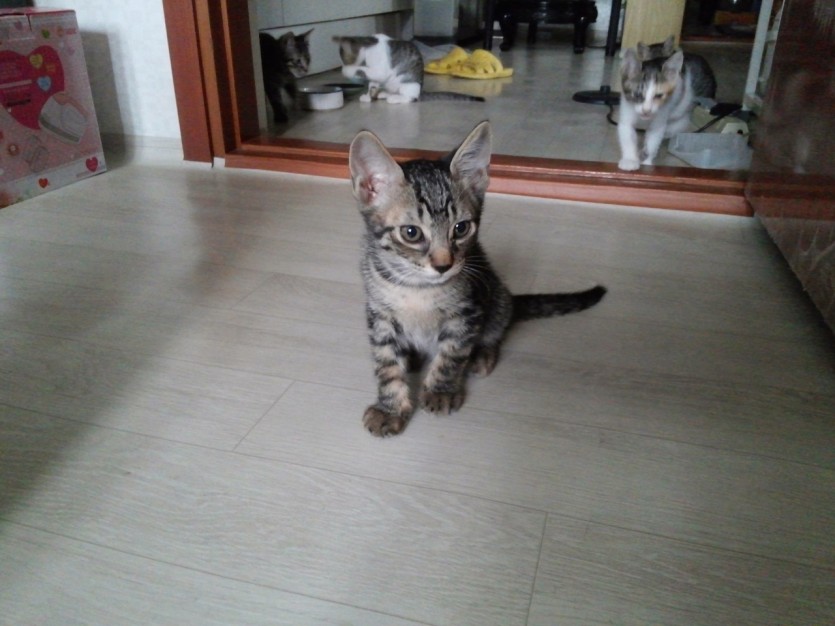 월 4일 태어난 검은색 3마리 흰색 섞인거 2마리 입니다.
