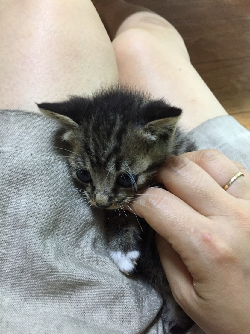 나이는 3~4주쯤 된거같고 남아입니다 잘먹고 잘놉니다 여기는 부산수영구 입니다