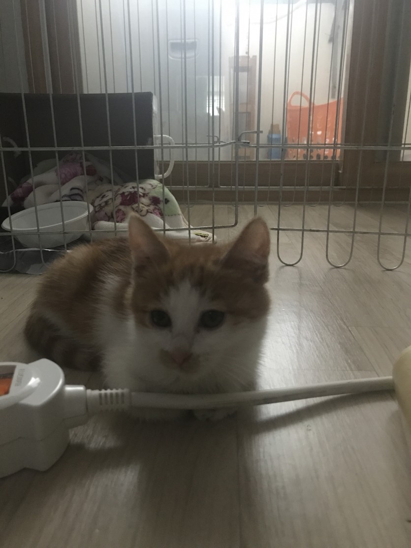 4일전 혼자있는 아기고양이를 발견해서 임보중입니다 ㅠㅠ 지역은 울산이구요 태어난지 한 두달정도 추정 여아입니다 성격은 착하고 순해요 연락주세요 !!