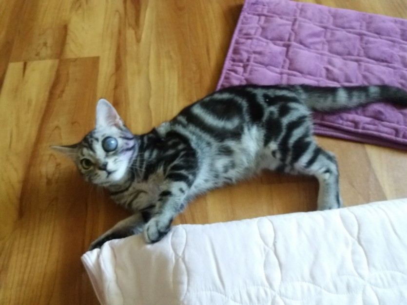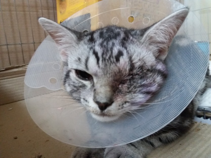 유기묘죠 처음 발견 당시 왼쪽눈이 심각한 상태였고 병원에 데려가니