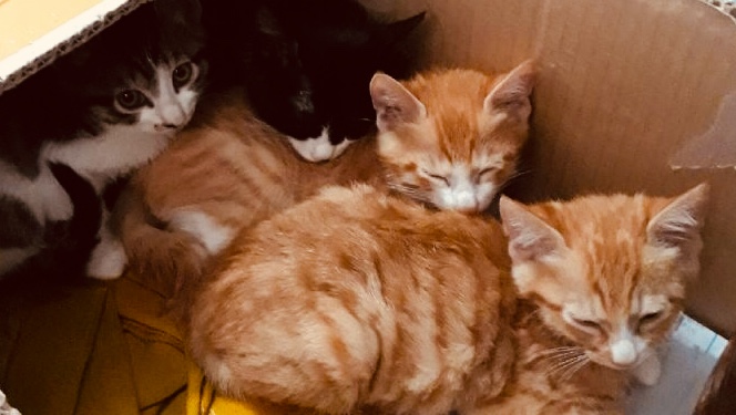 동네암컷냥이가 집 마당에 아기냥이 4마리를 낳았어요