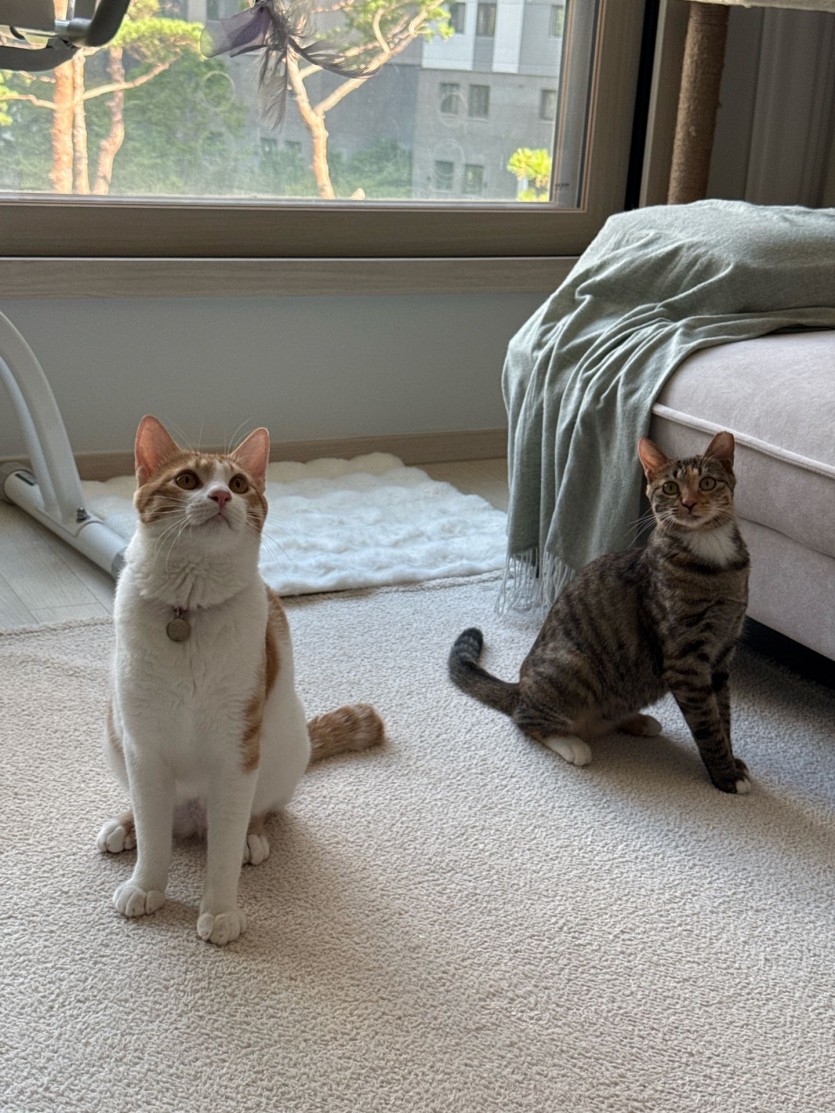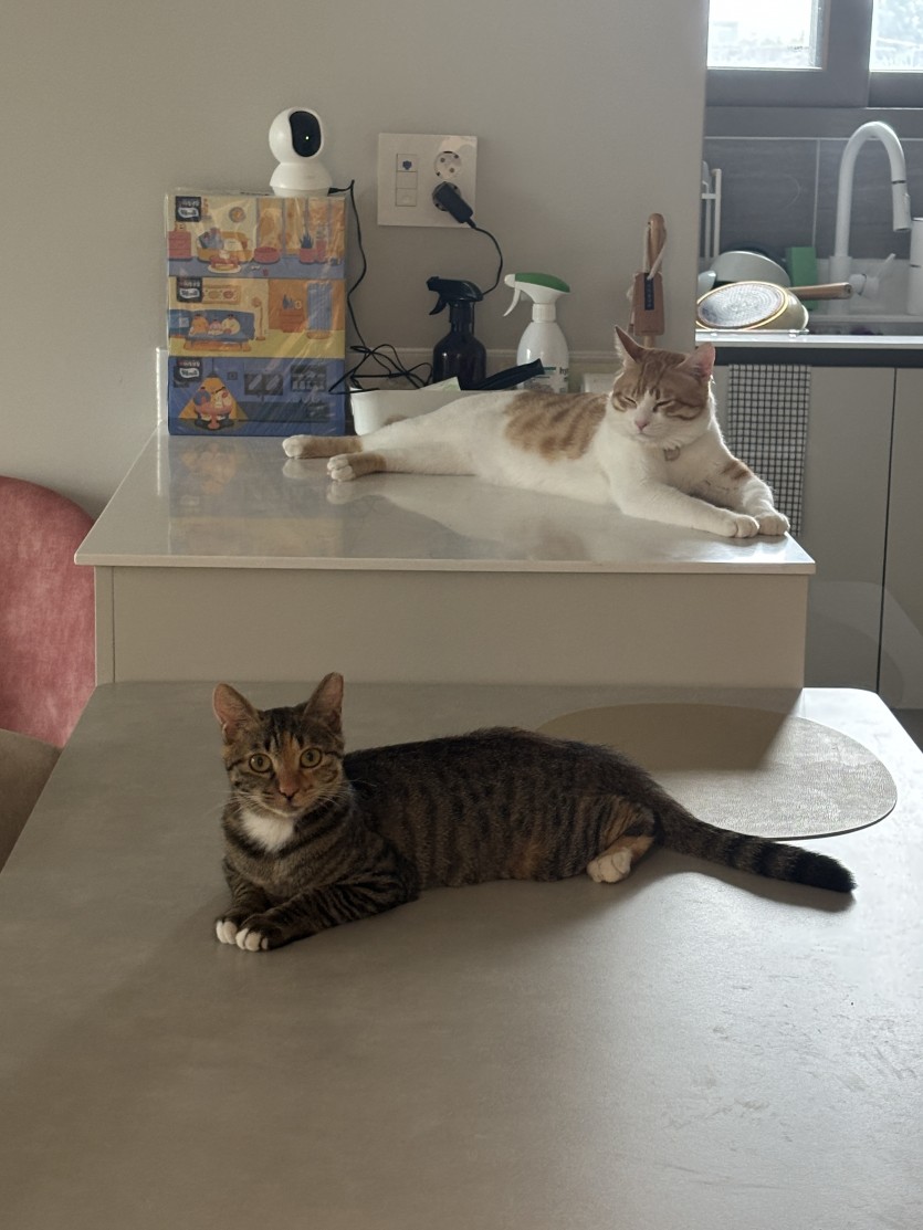 길냥이시절 형제가 먼저 하늘나라로가서 남은 여동생을 입양하게되었고, 함께살고있는 치즈냥이와의 합사가 어렵고 서로 스트레스를 계속 받게되어 입양코자합니다ㅜ