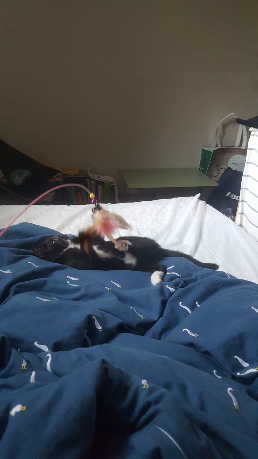 아주아주 활발합니다, 낚시대 좋아하구요, 티비보는걸 좋아합니다.