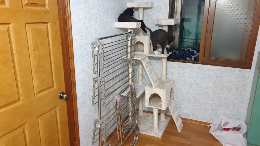 화장실 2개,모래,오줌패드,사료8키로등 다같이 보내고