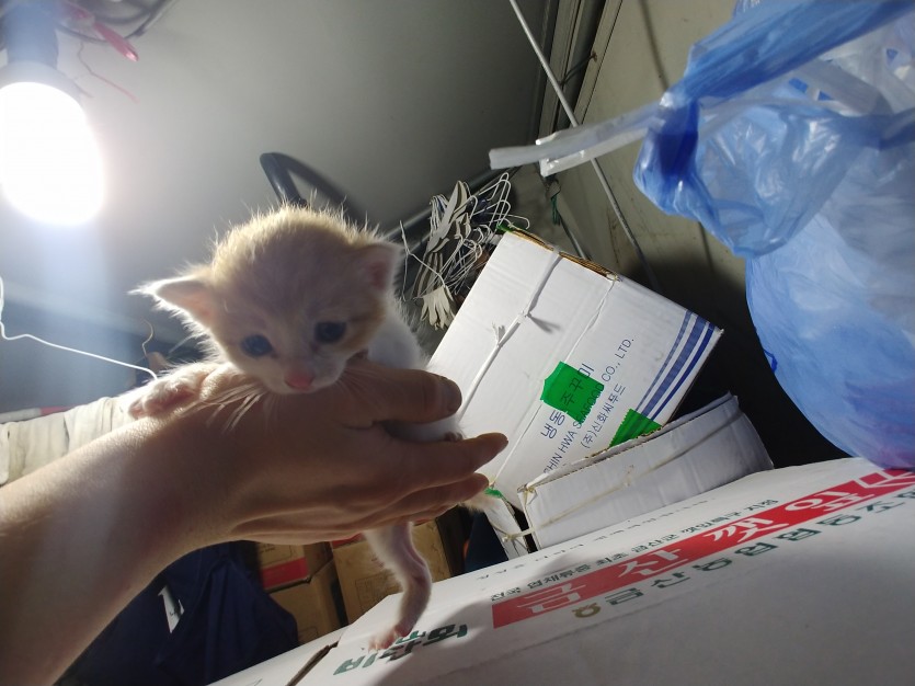분양사유 : 오늘 시장을 지나가다 고양이 울음소리가나 가보니 새끼고양이가 박스에 있더라구요.. 저희집은 키울여건이 안되 너무 안쓰러워 데려가 주실분을 찾습니다.(고양이 주려고 산 사료도 함께 무료로 드리겠습니다.)