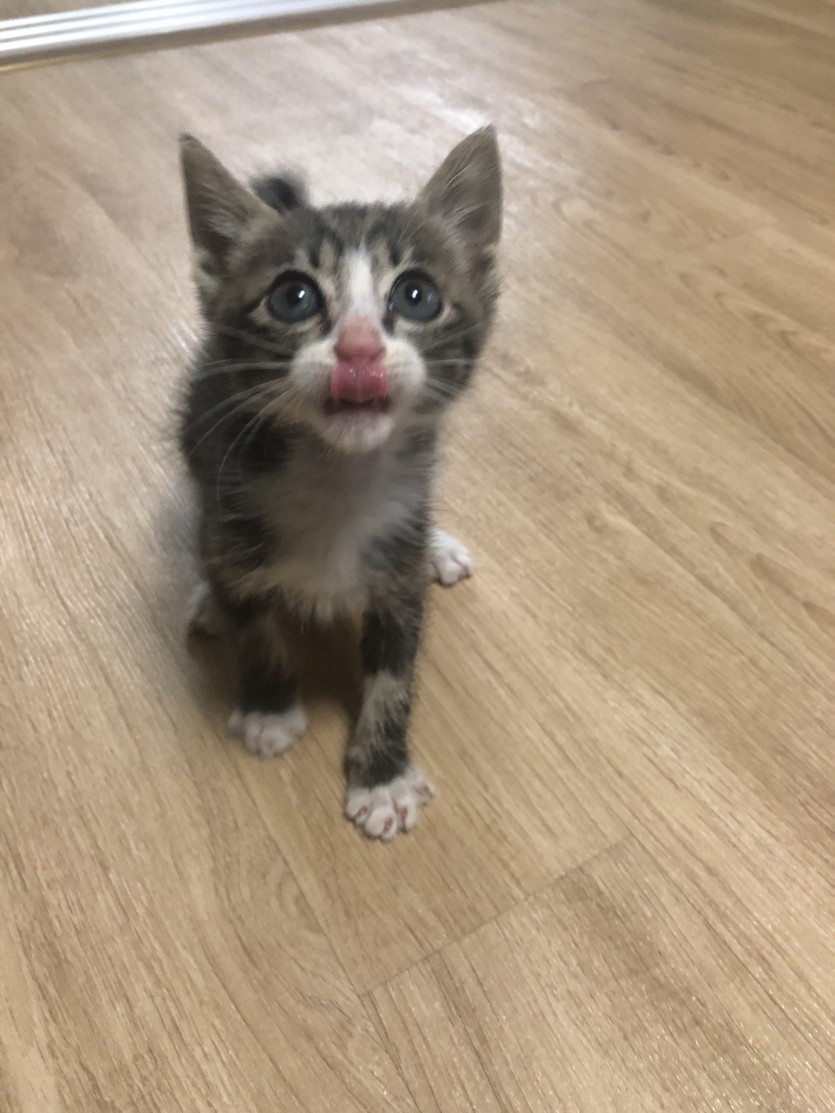 길고양이를 주웠는데 제가 키우질 못 하게 되어서 보냅니다 태어난지는 1달 정도 된 애기 입니다 애교가 많고 잘 놀아요 고양이 모래와 사료는 다 있어요! 관심있는분들은 연락주세요!