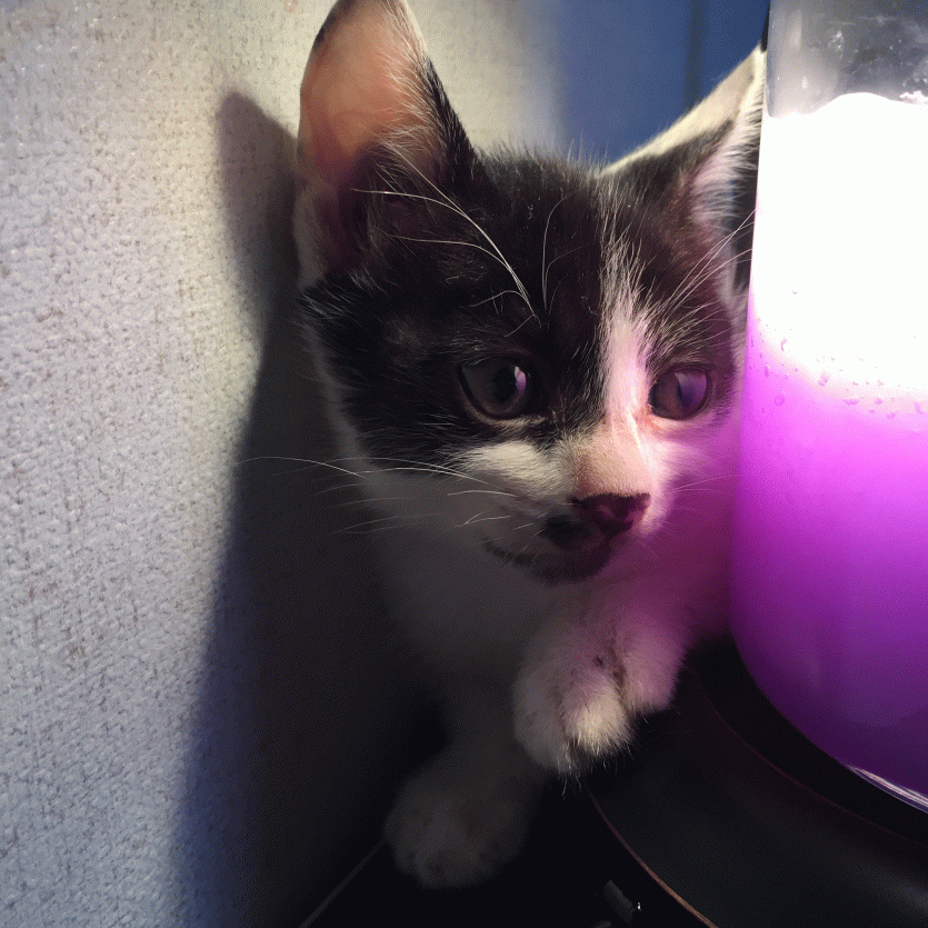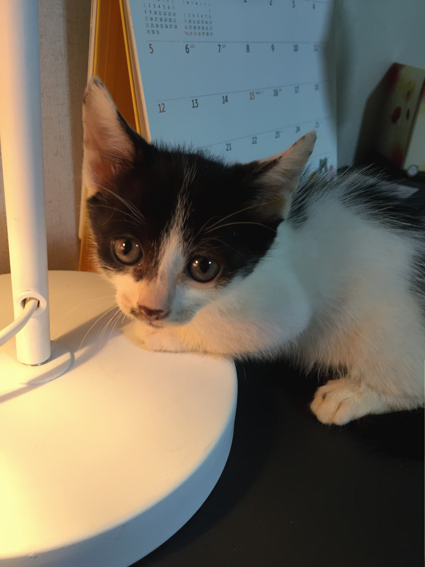 다. 2.5개월 가량되보인 듯 해요! 외관상으로 귀진드기나 눈꼽 아픈 곳은 없어보여요!