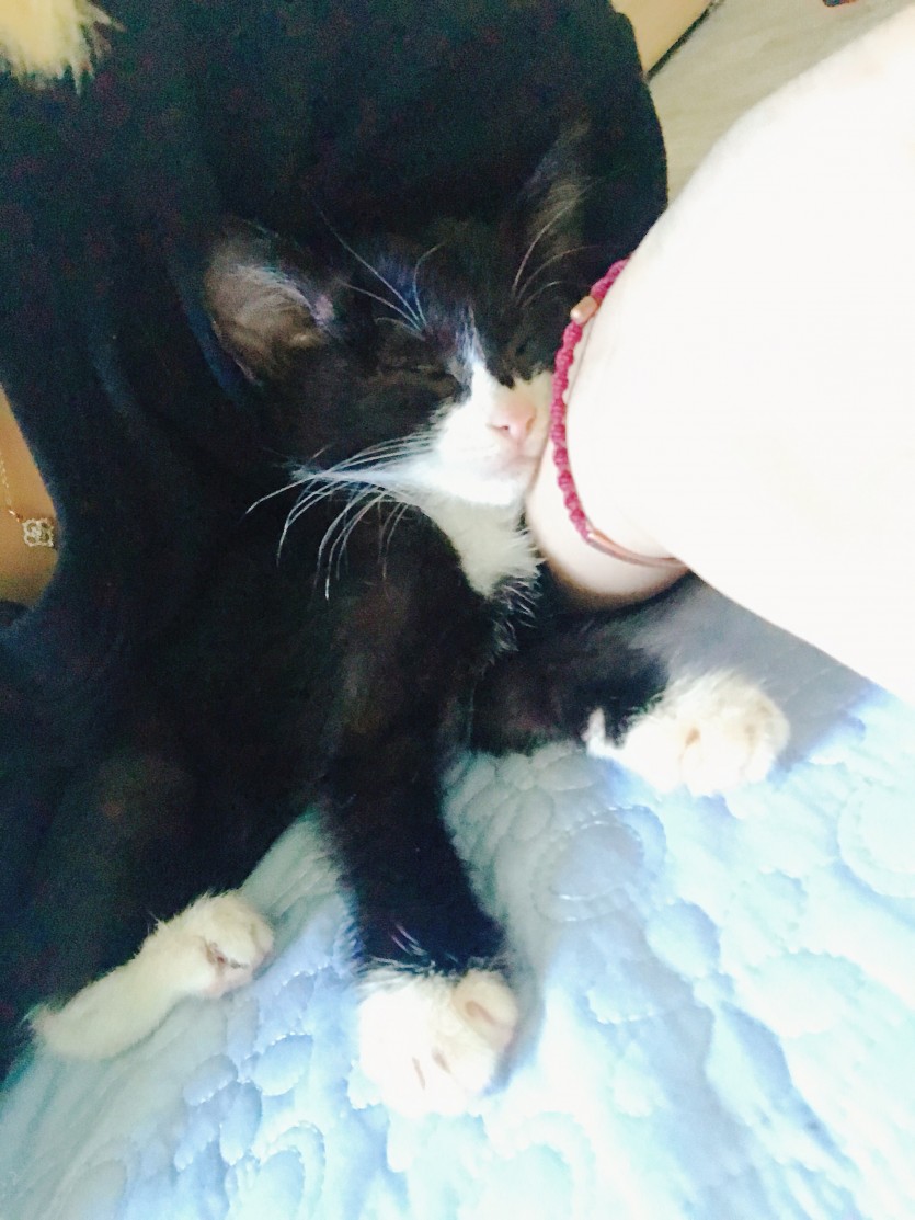 (애교가 많은편인거 같구요 먹을거를 엄청 좋아해요 그리고 같이 자는걸 좋아하는거 같아요)