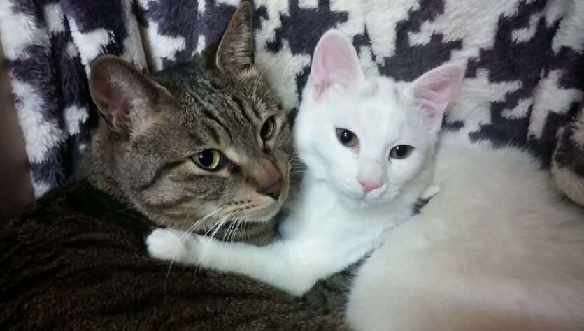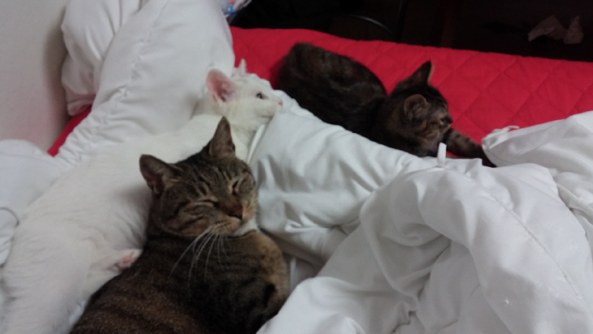 아기 고양이는 아니지만, 잘 돌봐왔고 행복하게 사랑받고 큰 냥이들입니다.