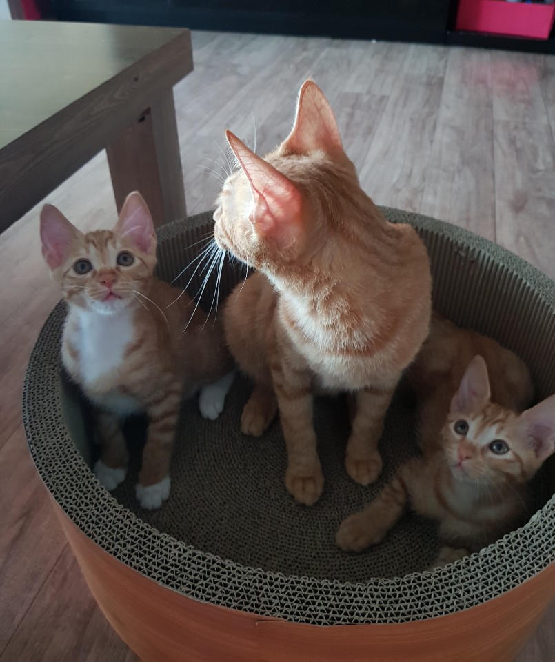 새끼고양이들은 2달동안 어미젖을 먹고 건강하게 컸고 지금은 사료와 간식을 먹고 있는 중입니다.