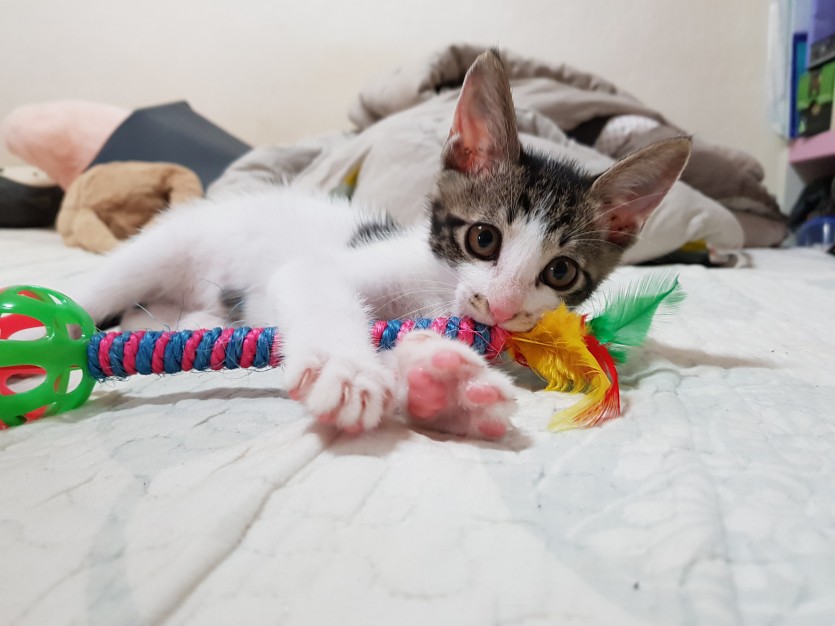 <div>공사장에서 힘들게 혼자 살던 여자 아기 고양이 입니다. 병원에서 첫 검사 받고 공간하고 잘 먹고 화장실에 혼자 잘 가고 많이 놉니다. 구입했던 모래/사료/장난감/집 드릴 예정입니다 책임비 3만원이고 6개월 후 돌려드립니다. 시간과 책임감 있고, 아기 고양이를 많은 사랑으로 키워 주실 분을 찾습니다.</div>