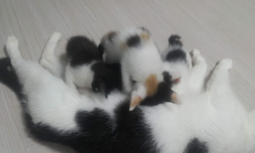 저희 집에서 키우던 암묘가 새끼 4마리를 낳았어요.