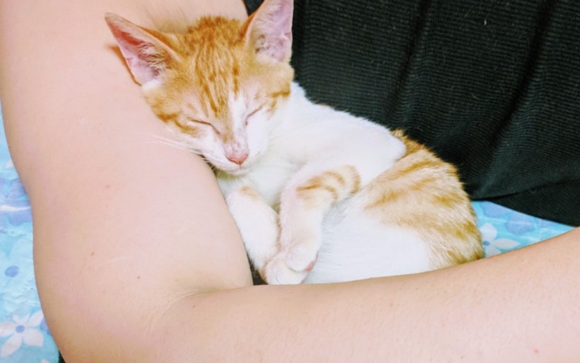 지금은 제 팔사이에 누워서 자고있습니다. 애교도 많고 무릎위에도 자주 올라와서