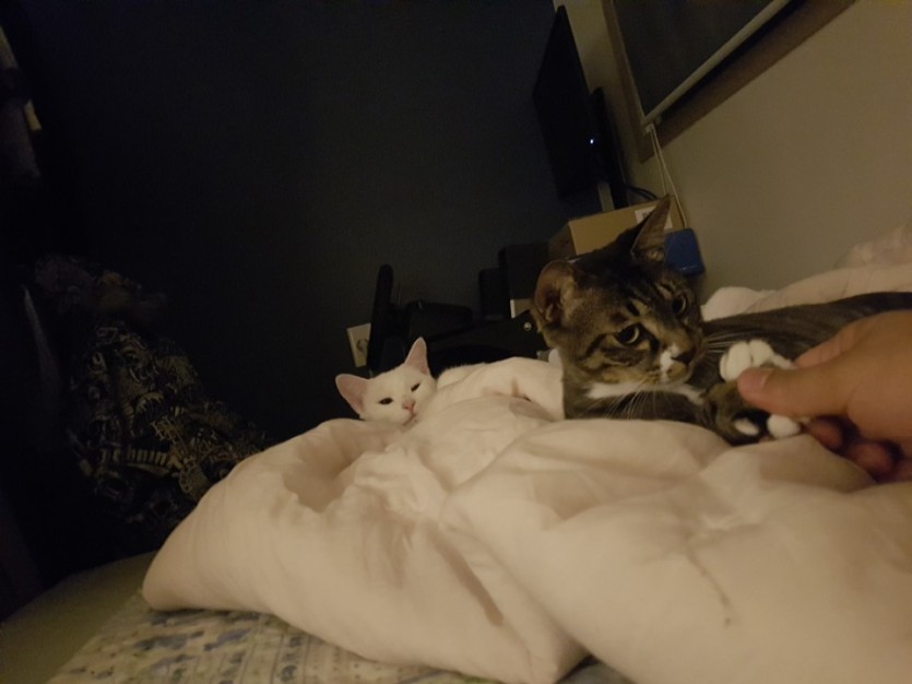 이크가 사진의 코리안 숏헤어이고 바이는 터키시앙고라 & 샴의 믹스묘입니다.