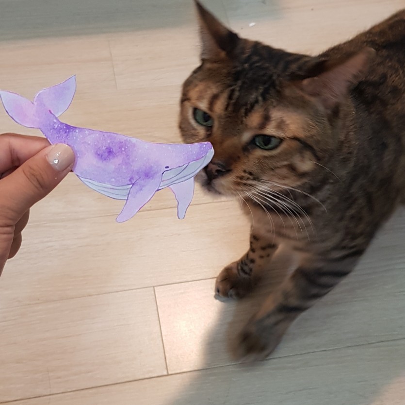 뱅갈: 다 커서 중성화 완료된 유기냥이를 데려왔습니다. 2~3살 추정. 사람에게 낯가리지않고 먼저 다가와서 부비작거리는 넉살 좋은 성격입니다. 깔끔을 엄청 떨어서 사료를 한알씩 꺼내먹곤 합니다. 얼굴도 예쁜 편이고 화장실 잘 가리나 화장실을 잘 안치워주면 이불이나 바닥등에 쌉니다. 안는것과 발만지는것에 거부감이 심하나 성인여성 힘으로 제압 가능한 정도입니다. 처음엔 안기만해도 기겁했으나 저에게는 싫어도 안겨있을 정도로 괜찮아졌습니다. 다른사람이 안아본적이 없어 다른사람에게는 모르겠습니다. 시판 간식은 잘 안먹고 입이 짧습니다. 닭고기 좋아합니다. 수컷이며 중성화 완료 되었습니다.