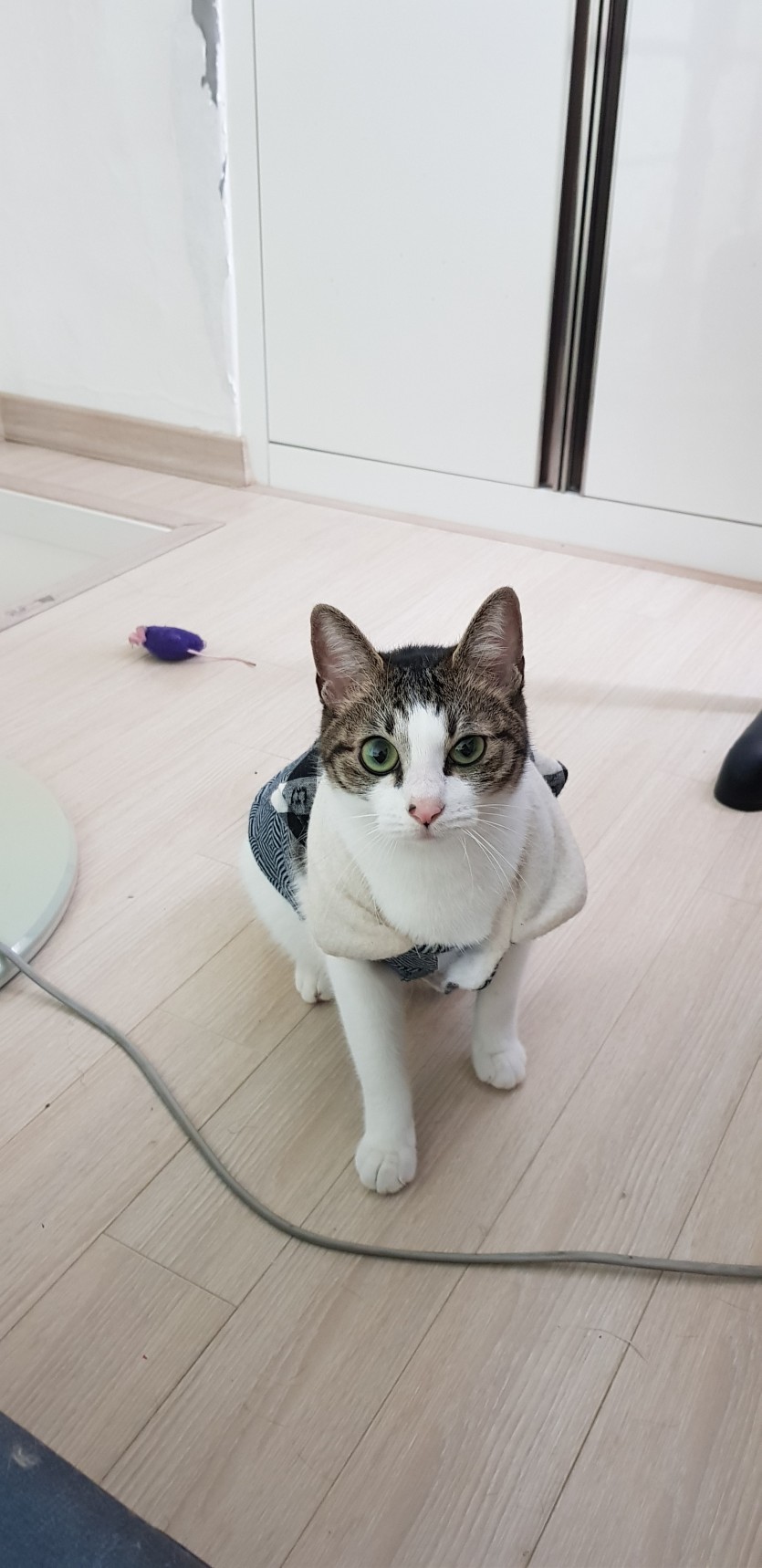 고등어태비: 버려진 아기 길냥이 형제중 한마리를 데려와 키웠습니다. 4살 추정. 낯을 많이 가리고 모르는 사람이 오면 숨어서 나오지 않습니다. 안면을 튼 사람에게는 애교가 무척 많고 눈만 마주쳐도 골골송을 부릅니다. 발라당 눕기도 잘 눕고 잘 비비는 편입니다. 얼굴도 굉장히 예쁜 편입니다. 역시 사고는 안치는 편입니다. 암컷이며 중성화 못했습니다. 출산 한번 경험 있습니다. 사료 안가리고 잘먹으며 화장실도 잘 가립니다. 간식은 츄르, 통조림같은것 좋아합니다.