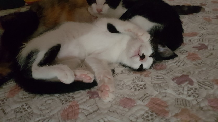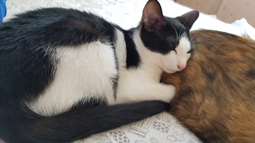 막내 레오는 암컷이고 흰/검에 조용하고 조심성이 많은 편입니다. 말썽부리지 않고 조용하지만 낚시대 놀이를 좋아해서 은근히 활발합니다. 미묘가 되려는지 매일매일 이뻐지는 중입니다.