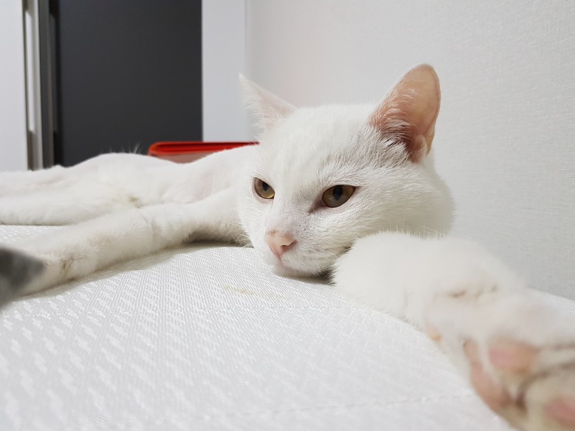 애교가 많아서 항상 잘때도 밥먹을때도 옆에 따라다니고 쫌 개냥이 성격이에요.