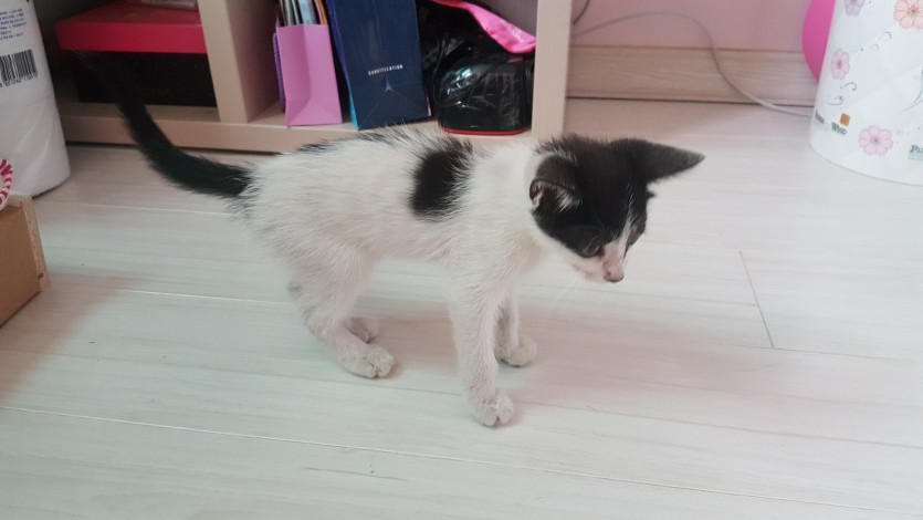 집주변에서 어린 고양이가 계속울길래 우선 데리고왔지만 제가 강아지도 2마리나 키우고있는 상태라서 고양이를 키우기엔 무리가있는것같아 이렇게 올립니다 아직어리고 활발합니다