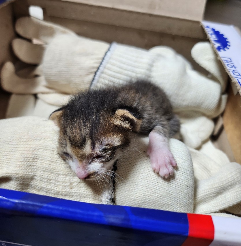 엄마 고양이가 놔두고 간 아기고양이를 구조했습니다.