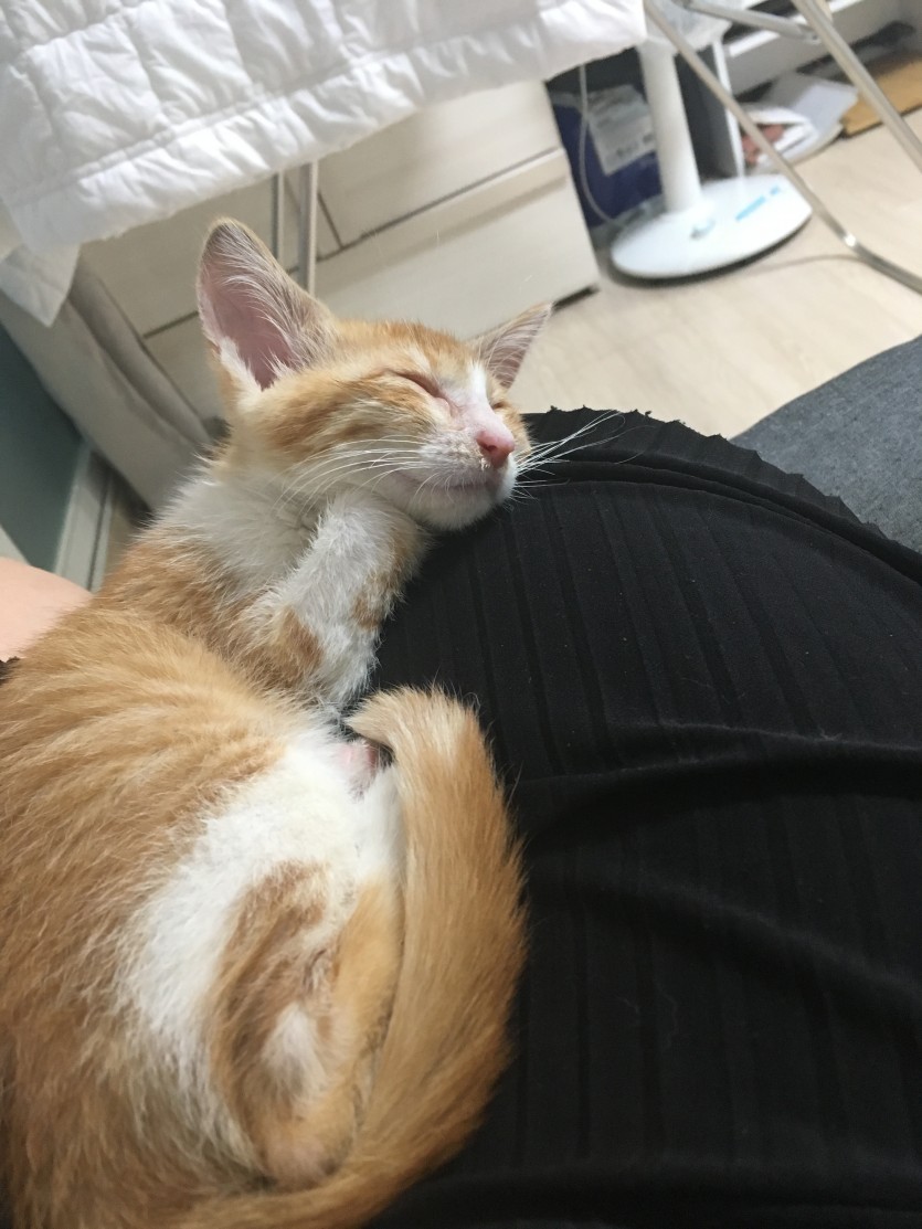 너무 어린아이라 위험해보여서 데리고왔는데 제가 알레르기가 있는 상태라 키울 조건이 안되내요