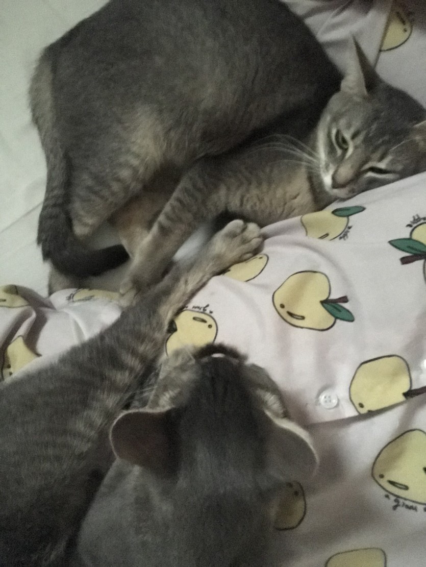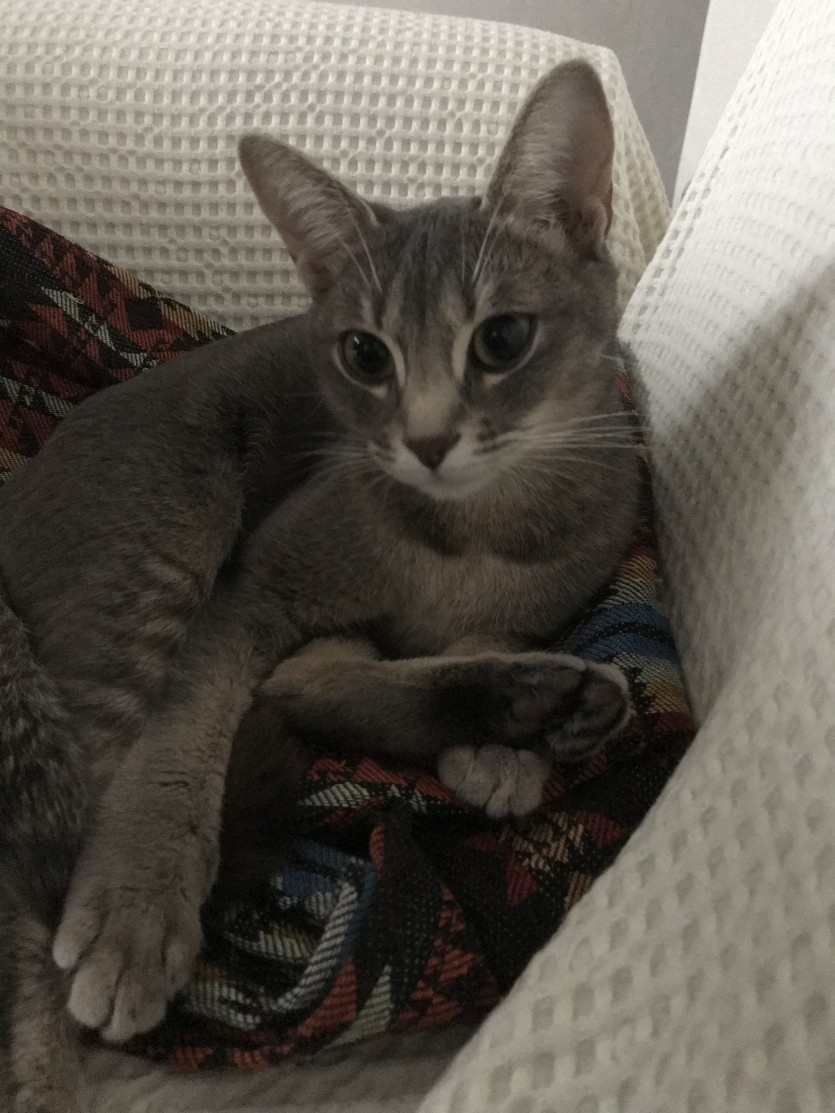 러시안블루 아빠랑 아비시니안 엄마 사이에서 태어난 믹스예요.