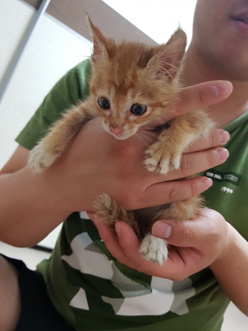 태어난지 2주 굶주린 1주일 넘었다고 하여 엄청 말랐습니다.태어나자 마자 몇일 지나지 않아 어미를 잃어..