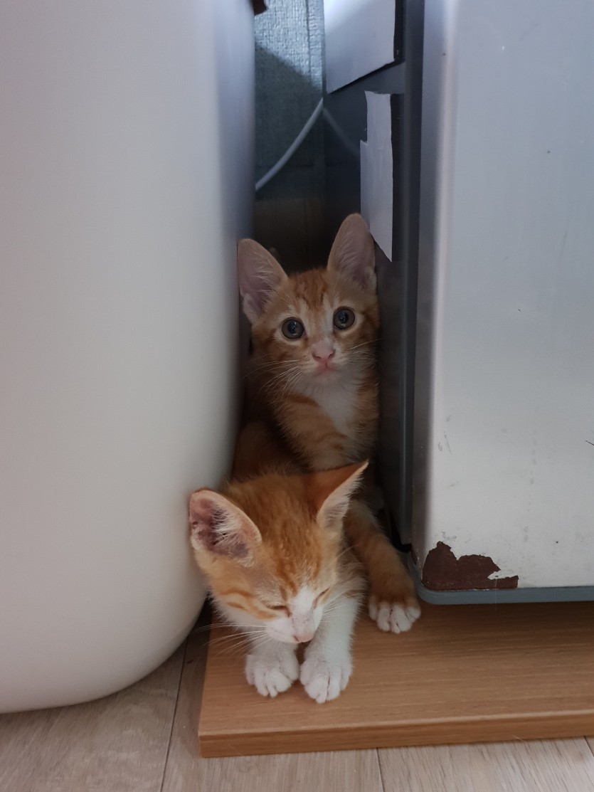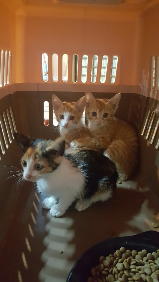 > 2일 전 밤 유기된 집고양이 새끼들을 어제 저녁에 구조해서 보호 중입니다.