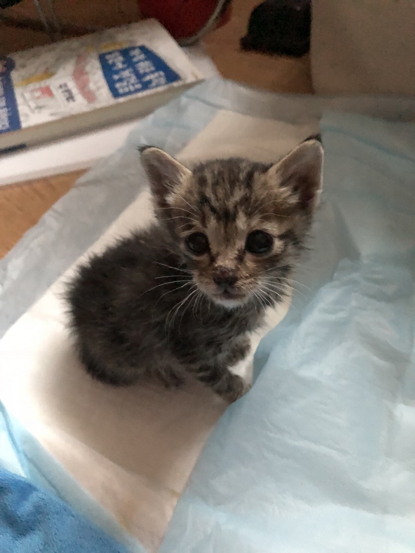 탈수증세가 있던 아이였습니다. 친구의 가게 건물 1층의 음식점에서 임시보관하고 있었는데 건강상태가 너무 좋지 않아 보여