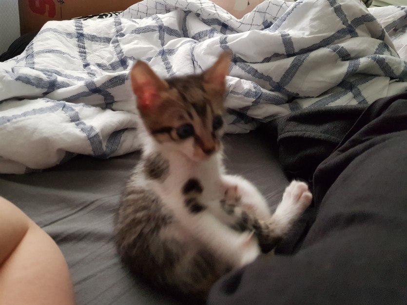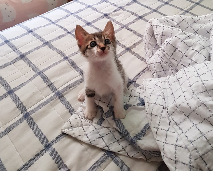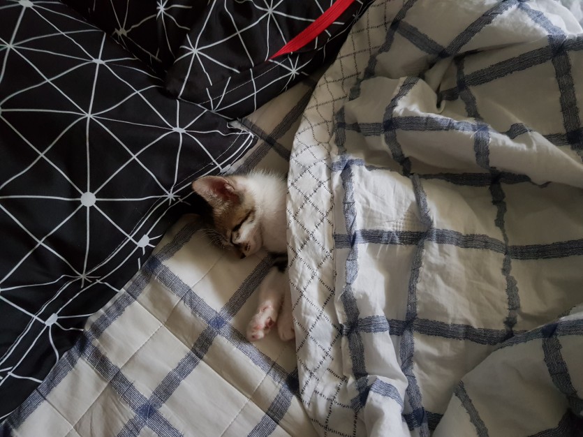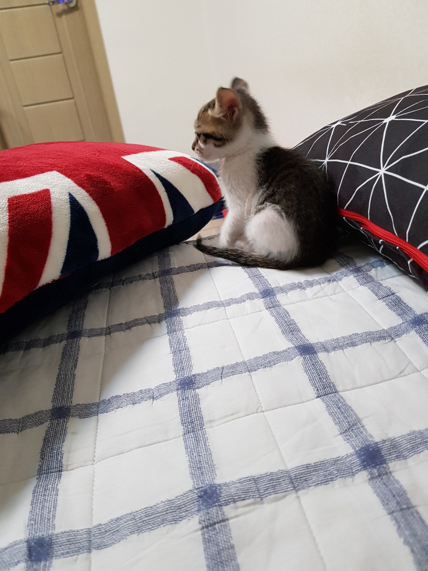 집 앞 상자에 버려져있는 새끼 냥이를 집에 데려왔습니다
