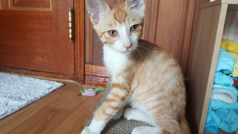 길에서 어미에게 버림받은 아가를 데리고 왔어요. 제가 키울려고 했었는데 알레르기가 심해서요. 두고 올수도 없었고... 이쁘게 키우실분 연락주세요. 착하고 사람을 좋아한답니다ㅠㅠ